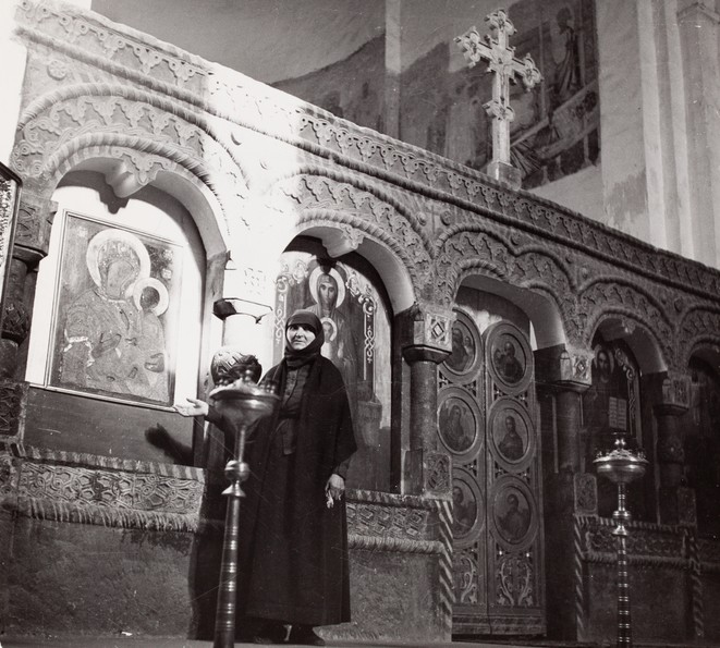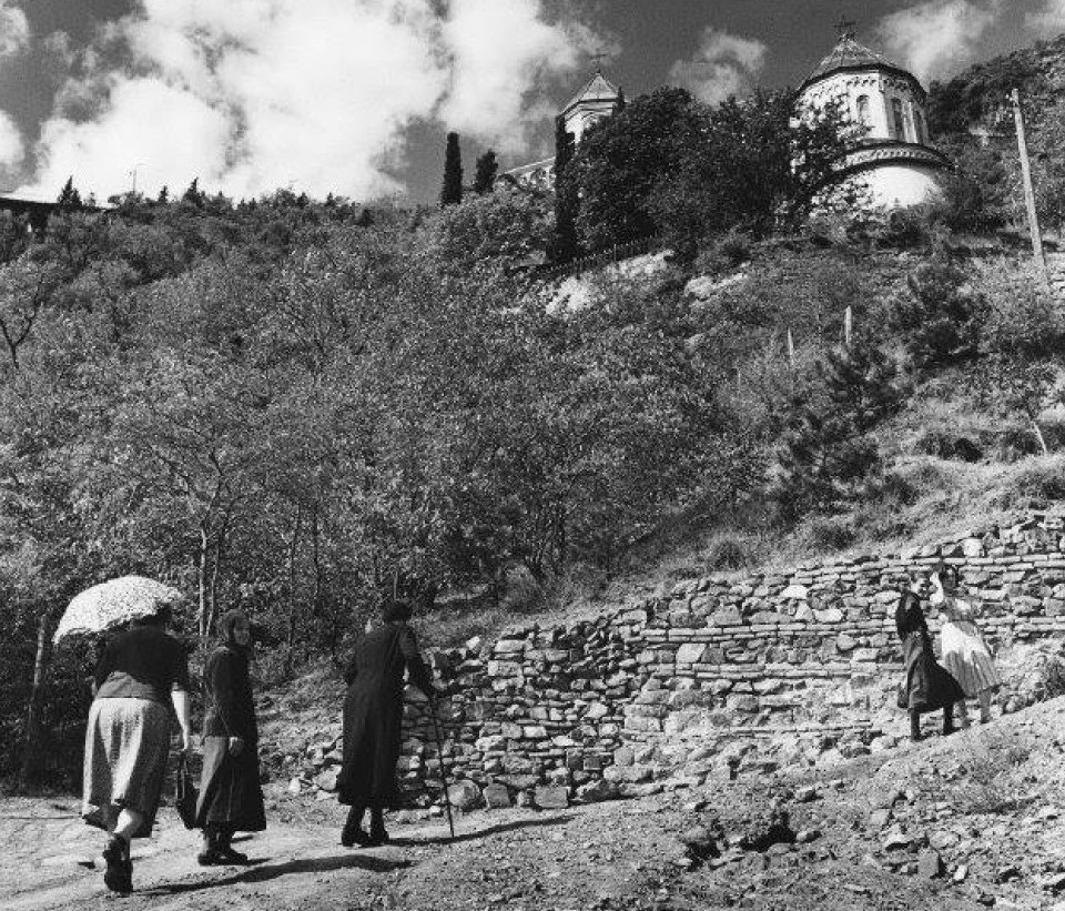 ...საუცხოოდ გალობდნენ უძველეს ტაძარშიც, სადაც წირვა აღევლინებოდა. მლოცველები უხმაუროდ შედიოდნენ ეკლესიის ეზოში, ზოგი მუხლზე იჩოქებდა და ისე ემთხვეოდა ეკლესიის კედელს, რადგან წესი ჰქონდა ასეთი... მამადავითის ეკლესიიდან ჩამოსულებს ისეთი მქუხარე რეკვით შეგვხვდნენ საკათედრო ტაძრის ზარები, რომ იქაც მოგვინდა შესვლა. მდიდრული ტაძარი იყო, საკმეველსა და დროს ფრესკები გაემუქებინა. წირვას ხანდაზმული კათალიკოსი, საქართველოს ეკლესიის წინამძღოლი აღავლენდა ჭაღარა თმითა და ოქროს მიტრით თავზე. სამოსი ოქროს ძაფით ჰქონდა ნაქარგი და ისეთი ლამაზი იყო, არარეალურს ჰგავდა. საოცარი გარემო იყო, გუნდი გალობდა, საკმეველი ეკლესიის გუმბათს სწვდებოდა, გუმბათიდან კი, მზის სხივები შემოდიოდა და იქაურობას ანათებდა.