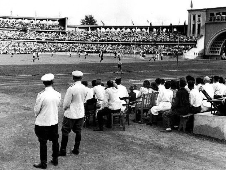 ...შუადღისას ფეხბურთის მატჩზე წავედით. შეხვედრა თბილისისა და კიევის გუნდებს შორის დიდებულ სტადიონზე გაიმართა. 40 ათასამდე მაყურებელი შეიკრიბა თბილისური გუნდის საქომაგოდ, რადგან მსგავსი პაექრობა ყოველთვის დიდი ინტერესს იწვევდა. უკომპრომისო მეტოქეობის, უხეში და სწრაფი თამაშის მიუხედავად, მოთმინება არავის დაუკარგავს, მხოლოდ ერთი-ორი ფეხბურთელი წაკინკლავდა მსუბუქად. მატჩი საყაიმო ანგარიშით - 2:2 დასრულდა, ამიტომ ცაშიც ორი მტრედი აფრინეს. ადრე, საქართველოში ყველა შეჯიბრების შემდეგ მტრედებს უშვებდნენ. თეთრი ფრინველი - გამარჯვებას, შავი კი, მარცხს განასახიერებდა და ადგილობრივებს შეჯიბრების შედეგს ამცნობდა...