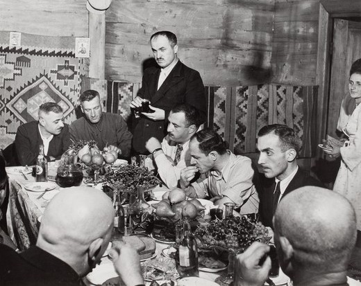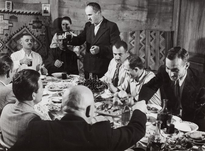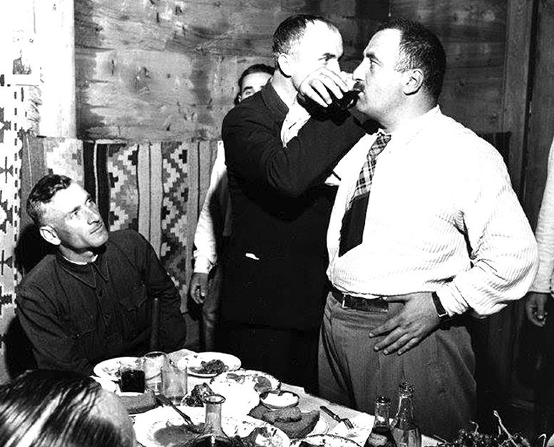 ...ჭამით მუცლები რომ ამოვივსეთ, მეურნეობის მენეჯერს გადავეყარეთ. მაღალი, ხმელი, პირდაპირი და უშუალო კაცი იყო პარტიზანული უნიფორმითა და თავზე მომდგარი ქუდით. სახლში მიგვიწვია თითო ლუკმისა და ღვინის გასასინჯად. მუცლები გვისკდებოდა, მაგრამ თავაზიანობა გამოვიჩინეთ, უარი ვერ ვუთხარით და ძალიან შევცდით, რადგან უნდა გვცოდნოდა რას ნიშნავდა "თითო ლუკმა"... იმდენი ხალხი დაგვხვდა ეზოში, მივხვდით, თითო ლუკმისთვის არ შეიკრიბებოდნენ. სახლიდან ორი გოგონა გამოვიდა, დოქები გამოიტანეს, ხელ-პირი დაგვაბანინეს და თეთრი პირსახოცები მოგვაწოდეს წითელი ნაქარგით. სახლში გრძელი დერეფნით შევედით და დიდ დარბაზში აღმოვჩნდით, კედლებზე ხასხასა ფერებით ნაქსოვი ხალიჩები ეკიდა, იატაკზე კი, ჭილოფი ეფინა. მაგიდის დანახვაზე კინაღამ გული გაგვისკდა, რადგან დაახლოებით 14 ფუტის სიგრძეზე დაეხვავებინათ საჭმელი.